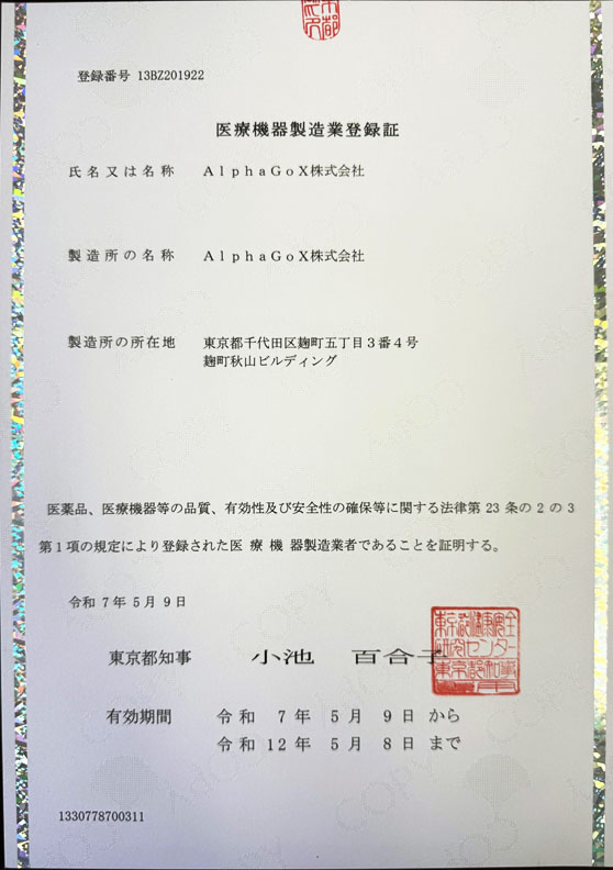 お知らせ 東京都に医療機器製造業を登録しました。(東京都知事 登録番号 13BZ201922) 2025.05.09 東京都に医療機器製造業を登録しました。 (東京都知事 登録番号 13BZ201922)