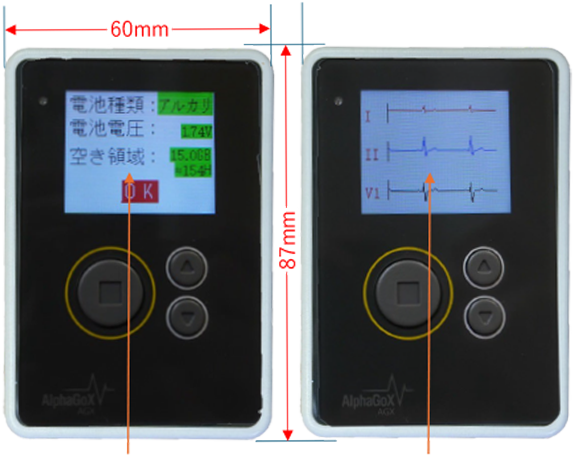 心電計起動画面       心電図波形表示画面