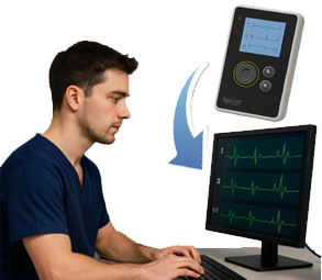 • 心電図データの送信から解析結果の受信までがわずか3分弱で長時間心電図を即時解析。